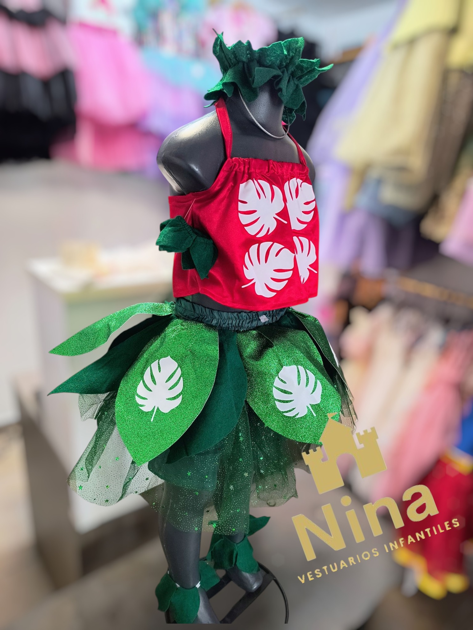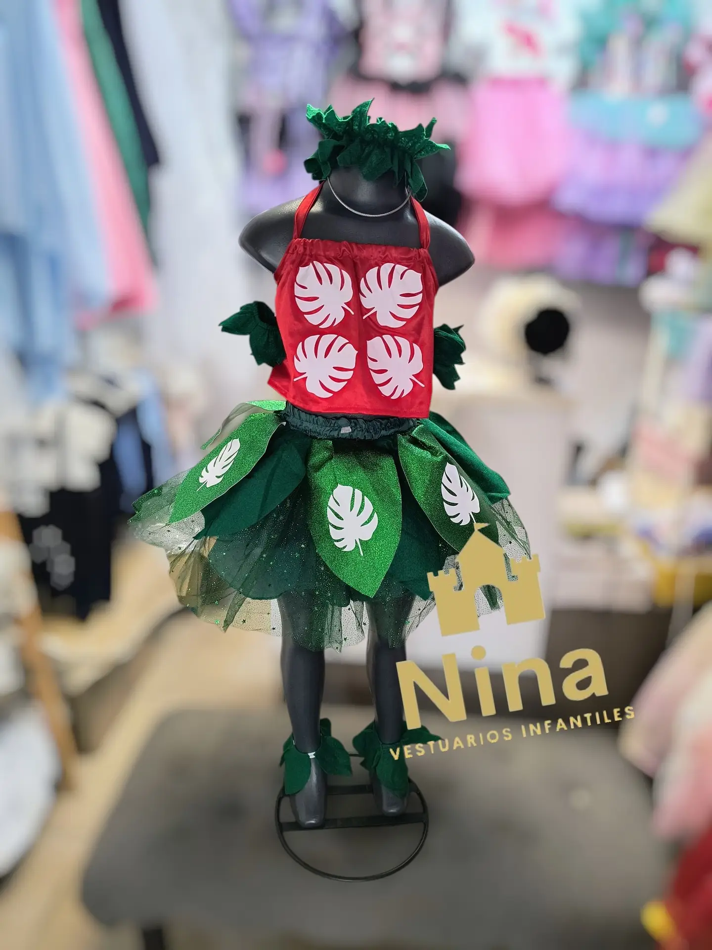 Vestido de personaje Lilo, de la pelicula Lilo y Stitch. Incluye diadema, muñequeras y tobilleras